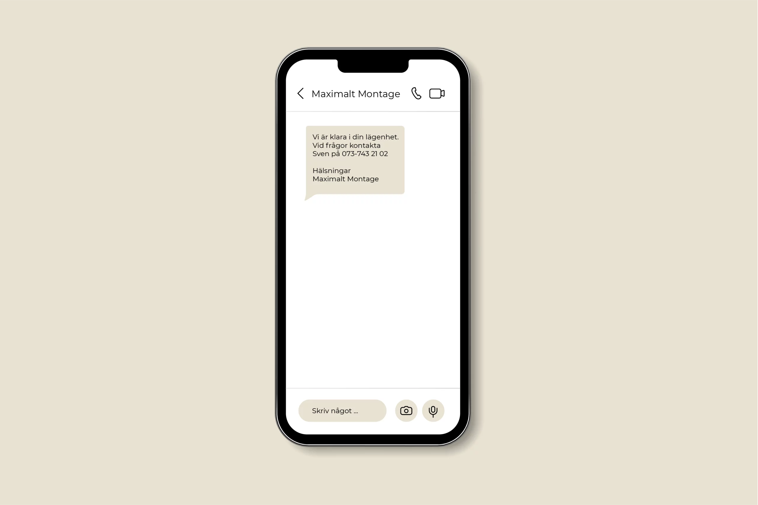 Tjänsten innebär att vi skickar ut ett meddelande till den boende om vilken dag och tid arbetet startar samt ett meddelande när vi är färdiga.